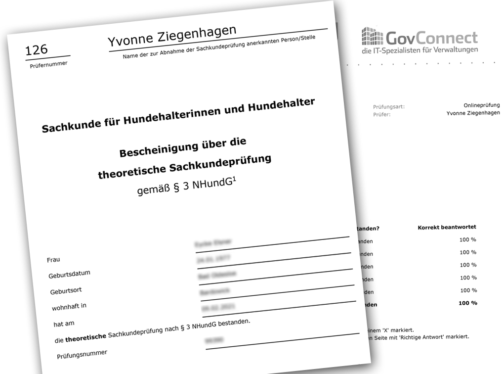 Der BHV-Hundeführerschein und die VDH-Begleithundeprüfung werden als Sachkunde anerkannt.